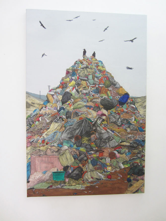 A l'inverse du film de Fleischer qui se projette dans un futur fictionnel hypothétique, les peintures et sculptures ici proposées s'inscrivent dans une sorte d’inventaire rétrospectif : elles sont des fragments quasi documentaires des dérives de notre monde depuis le début de l'ère industrielle, un bestiaire technologique non-exhaustif, dans lequel la nature et l'humain sont en voie de disparition.